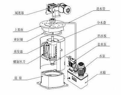 片冰機可分三部分:熱交換裝置、水循環(huán)裝置、刮冰裝置等其他組件。