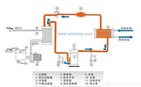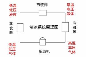 制冰系統是由制冷壓縮機、冷凝器、膨脹閥和蒸發器四個基本部件組成。它們之間用管道依次連接,形成一個密閉的系統,制冷劑在系統中不斷地循環流動,發生狀態變化,與外界進行熱量交換。其工作原理如圖: 一、壓縮機吸氣壓縮 壓縮機在電機帶動下不停地轉動,吸入蒸發器內低溫低壓的汽態冷媒,把冷媒壓縮成高溫高