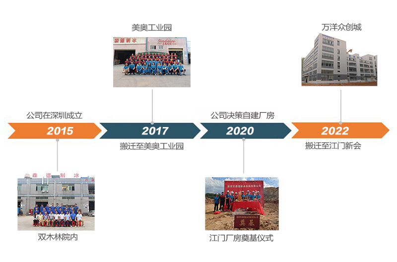 2020年公司決策買地自建廠房,2021年在江門新會(huì)破土動(dòng)工,歷經(jīng)兩年建設(shè)新廠房在2022年底完工,面積9500平方米。新征程,新起點(diǎn),新希望,森德制冰未來可期。