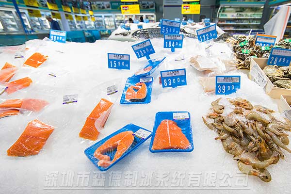 隨著中國經濟的發展,人們生活水平的提高,對生鮮水產海鮮的需求越來越大。得益于我國制冰機的發展,為海鮮零售保鮮提供保障。海鮮開始從沿海往內陸發展,進入普通家庭。通常超市會配備一臺0.3-5噸的片冰機,超市有無片冰機,體現其超市整體實力和生鮮品質的好壞。