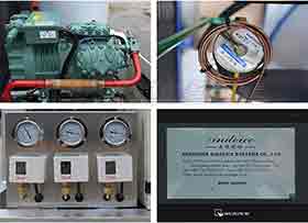 片冰機主要由壓縮機、冷凝器、膨脹閥、蒸發(fā)器等配件組成,制冰行業(yè)熟稱制冷四大件。除制冷四大件外,片冰機還有干燥過濾器、單向閥、電磁閥、截止閥、油壓表、電箱、高低壓開關(guān)、水泵等配件。 1、壓縮機,為制冰機提供動力,是制冰機的心臟。吸入低溫低壓的汽態(tài)冷媒壓縮成高溫高壓的液態(tài)冷媒。 2、冷凝器,冷凝器有風(fēng)冷和水冷兩種,主要靠風(fēng)扇帶走多余熱量,把高溫的汽