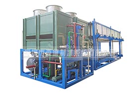 蒸發冷是塊冰機的主要換熱設備,和風冷凝器、冷卻水塔作用是一樣的。把壓縮機排出高溫高壓汽態制冷劑降溫至常溫常壓的液態,為塊冰機蒸發提供條件。風冷凝器散熱比較費電,冷卻水塔散熱浪費水,而蒸發冷利用風冷和水塔優勢,利用風力+汽態水,更高效、更節能。 1、蒸發冷塊冰機工作原理 塊冰機壓縮機排出的過熱高壓冷媒氣體經過蒸發式冷凝器中的冷凝排管,使
